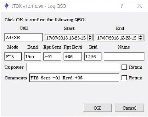 時刻を修正し、「OK」をクリックするとハムログに転送完了。